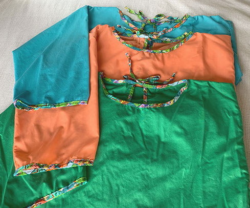 Polycotton 65%/35%, drawstring at both the neck and waist